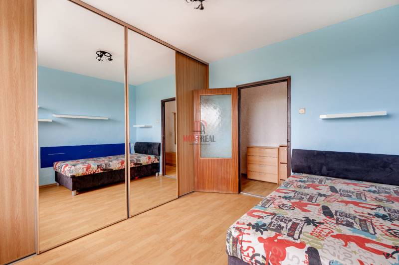 Dispozícia bytu je priaznivá aj na prípadný prenájom.Obytné izby aj kuchyňa sú nepriechodné, vstup do kuchyne je samostatný, ako aj do obývacej izby.